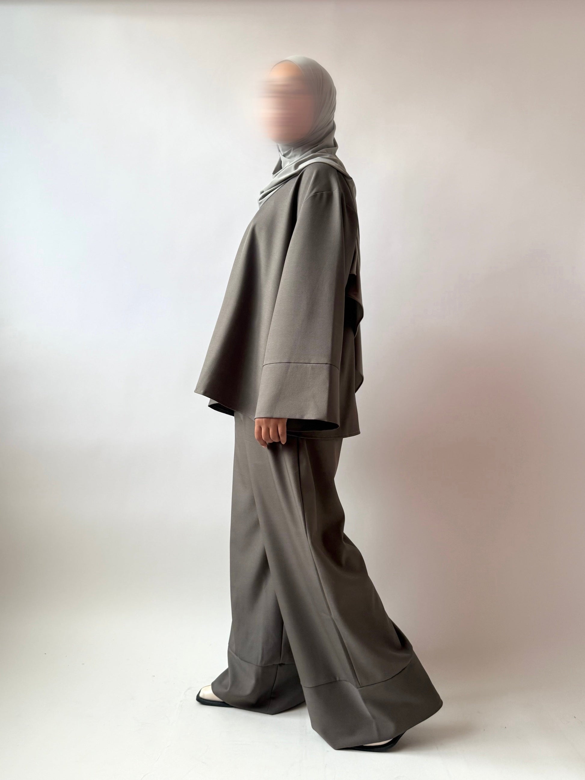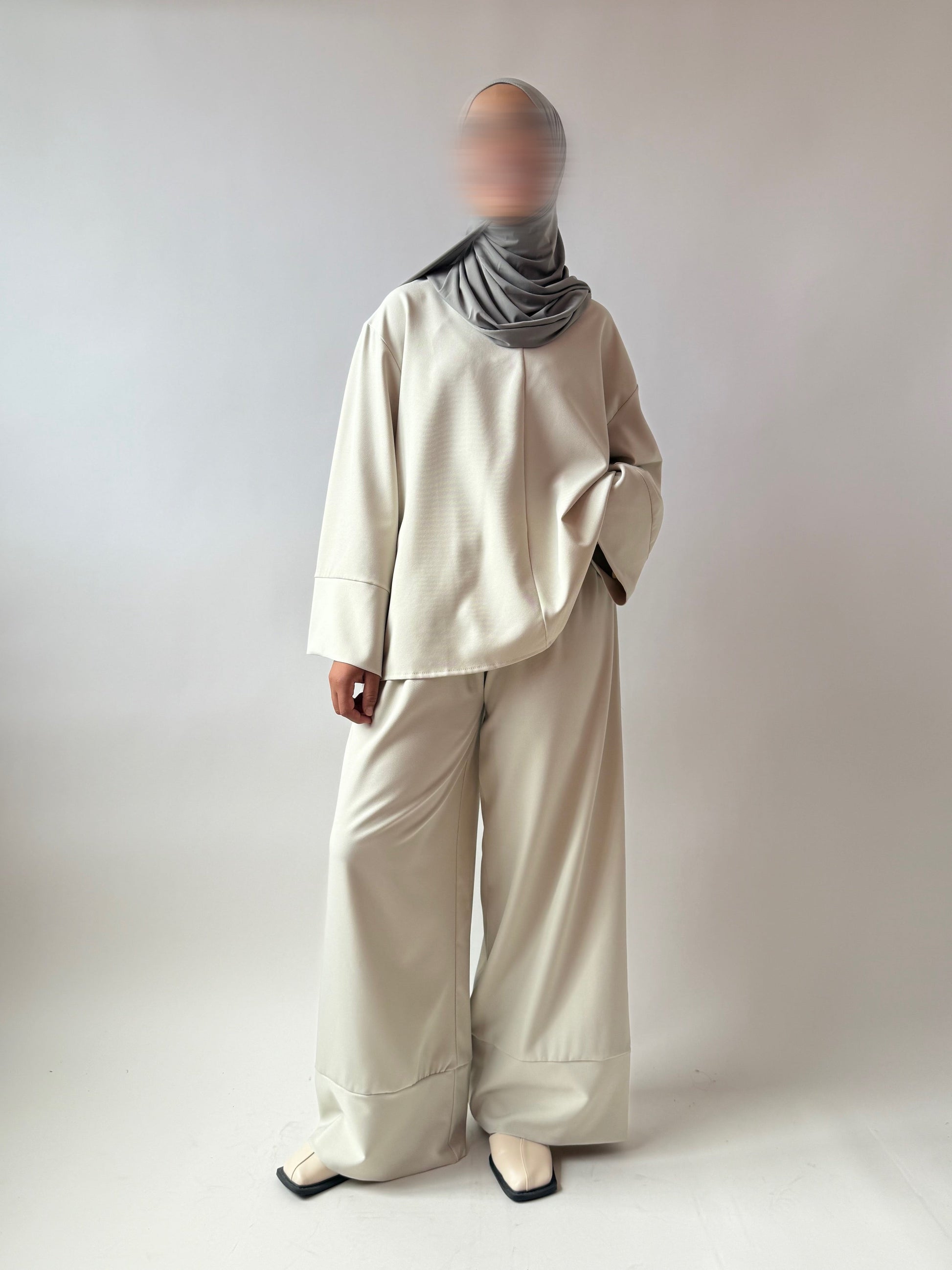 Haut et pantalon très large pour une silhouette fluide et raffinée. Un ensemble chic, minimaliste et facile à porter.